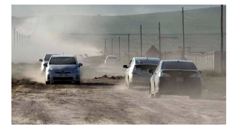 Энэ хэсэгт авто замын ажил ид бужигнах аж. Жолооч бүр л дуртай замаараа давхилдана. Энэ нь аргагүй юм. Автомашины хөдөлгөөнд хөрс нь сийрэгжсэн тул цагаан тоос дэгдэнэ. Үүнээс болж зэрэгцэж явахад урд талын машин харагдахгүй байх, цаашлаад бүхээгт шороо тоос орох зэргээр бэрхшээлүүдтэй. Иймд нэг нэгнээсээ зугтсан байдлаар зорчино. Энэ хэсэгт салаа зам гарах, урдаас ирж байгаа тээврийн хэрэгслийг сайтар ажиглах зэргээр анхаарал болгоомжтой зорчихгүй бол осол гарах эрсдэлтэй байна шүү.