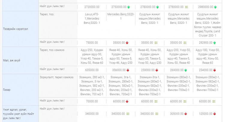 Мал: Адуу-180, Үхэр-50, Хурдан удмын адуу-40, Хонь-50, Ямаа-60 нийт үнэлгээ 254 сая төгрөг болж өнгөрсөн жилийнхээс 15 сая төгрөгөөр хорогджээ.