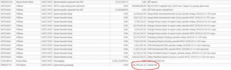 Ийнхүү Улсын баатар үйлдвэрийн дарга Х.Бадамсүрэн өндөр орлоготой ч охиныхоо сургалтын төлбөрөөр төрийн мөнгөнөөс гаргуулсан талаар өмнө хэвлэлээр гарж байсан. Тухайлбал, 2019 оны долдугаар сарын 19-нд 102 сая 385 мянган төгрөг Эрдэнэт үйлдвэрийн Худалдаа хөгжлийн банк дахь 499025776 тоот данснаас Канадын Торонтогийн Их сургуулийн дансанд “Tuition fee for Buyanjargal Badamsuren, 2019-2020 se.ROSI Account: BADAM100342347” гэсэн гүйлгээний утгатайгаар шилжүүлсэн байна.