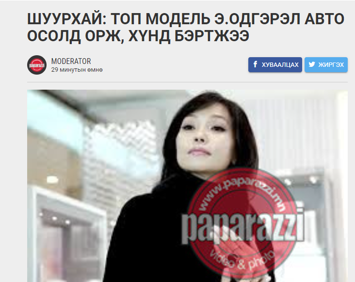 Монголын загварын салбарын томоохон төлөөлөгчдийн нэг, өдгөө 50 насыг зооглож яваа загвар өмсөгч, топ модел бол Э.Одгэрэл юм. Сүхбаатарт аймгаас Улаанбаатар чиглэлд явж байсан автомашин осолдож, дөрвөн хүн гэмтэж, яаралтай эмнэлэгт хүргэгдсэн байна.