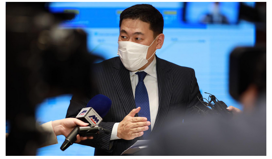 Хэвлэлийн хуралд Ерөнхий сайд Л.Оюун-Эрдэнэ, Эрүүл мэндийн сайд С.Энхболд нар оролцов.