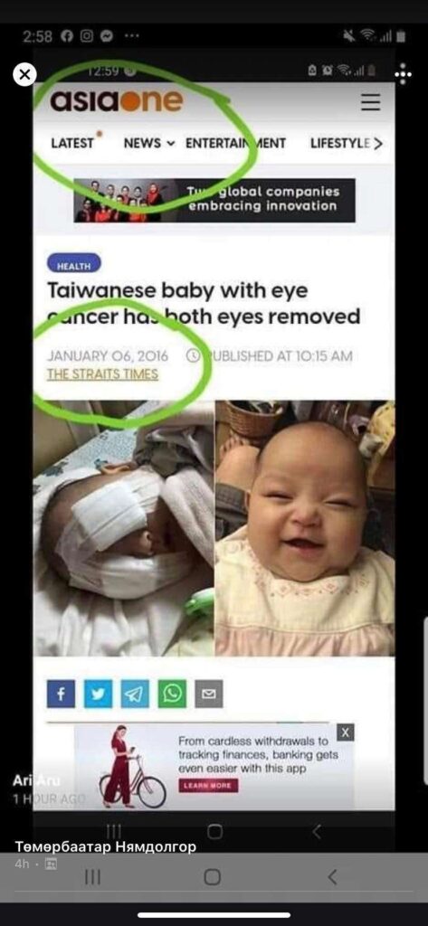 Тэгвэл тухайн хүүхдийн зураг нь монгол хүүхдийн зураг биш гадаад хүүхдийн зураг болохыг “Asia One” гэх гадаад сайт дээр 2016 онд тавигдаж байсан хүүхдийн зураг болохыг илрүүлжээ.