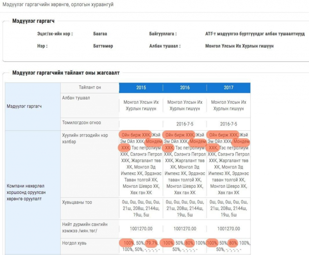 Дээр нь Б.Баттөмөр өөрөө ЖДҮчин. Дархан-Уул аймгаас сонгогдсон түүний 80 хувийн эзэмшилд байдаг “Мондем” компани ЖДҮХС-гаас 2018 оны 10-р сард 300 сая төгрөгийн зээл авсан баримт бий.