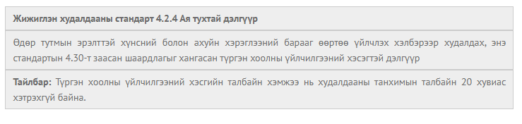 Энэ талаар Улаанбаатар хотын Захирагчийн ажлын албаны Хүнс үйлдвэрлэл, худалдаа үйлчилгээний хэлтсийн дарга Т.Золжаргал “Жижиглэн худалдааны стандарт хамгийн сүүлд 2019 онд шинэчлэгдсэн. Үүнд нэмэлтээр ая тухтай дэлгүүрийн стандарт нэмэгдэж орсон байгаа. Энэ стандартын 4.2.4-т ая тухтай дэлгүүрийн стандартыг тодорхой заасан бий.