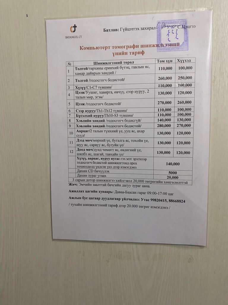 Харин “Алтайн хан тайшир” болон “Өнө мед” компаниуд эрүүл мэндийн үйлчилгээ үзүүлэх зөвшөөрөлгүй боловч сайдын ээж Б.Кума нь Баянгол дүүрэгт байрлах Эрүүл мэндийн 7 дугаар төвд томограф ажиллуулж ирсэн. Харин энэ үйлчилгээнд зориулж эрхэм эрүүл мэндийн төвийн дарга З.Балдандугар өнгөрсөн онд 30 сая төгрөгийн С.Энхболд сайдын ээж Б.Кума руу шилжүүлжээ. Энэ хугацаа нь С.Энхболд Эрүүл мэндийн сайд болсноос хойшх үйл явдал гэдгийг Шилэн дансны мэдээллээс харж болно.