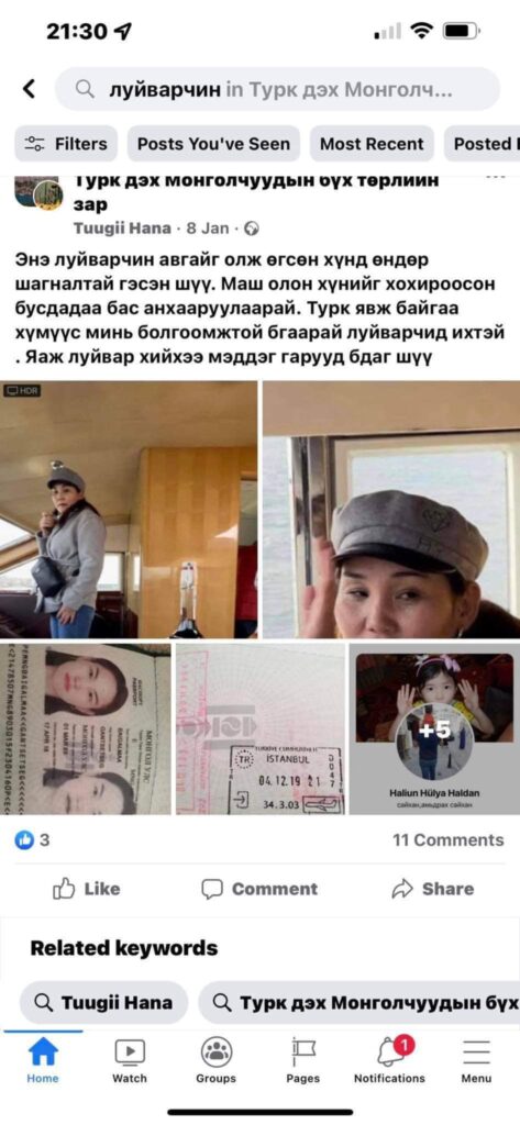 Энэ бол дуучин Нара буюу Нарантуяагийн өөрөө бичсэн пост нь юм. Тэрээр Туркэд бгаа энэ залилан Шүрээ гэдэг жинхэнэ нэр нь Байгальмаагийн Ганцэцэг хүүхэн би Дуучин Нарагийн найз нь одоо над дээр ирж бгаа хардаа энэ хүүтэйгээ ээжтэйгээ хамт ирэх гэж бгаа гээд миний хүүгийн болон ээжийн бас миний паспортын зургийг хүмүүст үзүүлээд онгоцны билет захиалж өгье гээд залилж яваа гэнэ шүү!!!