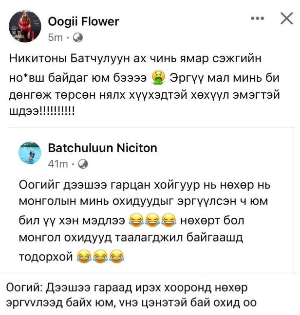 Тэрбээр өөрийн сошиал хаягтай Никитон-ы Батчулуун ах чинь ямар сэжгийн н*вш байдаг юм бэ. Эргүү мал минь би дөнгөж төрсөн нялх хүүхэдтэй хөхүүл эмэгтэй хэмээн ихэд бухимдангуй үзэл бодлоо илэрхийлжээ.