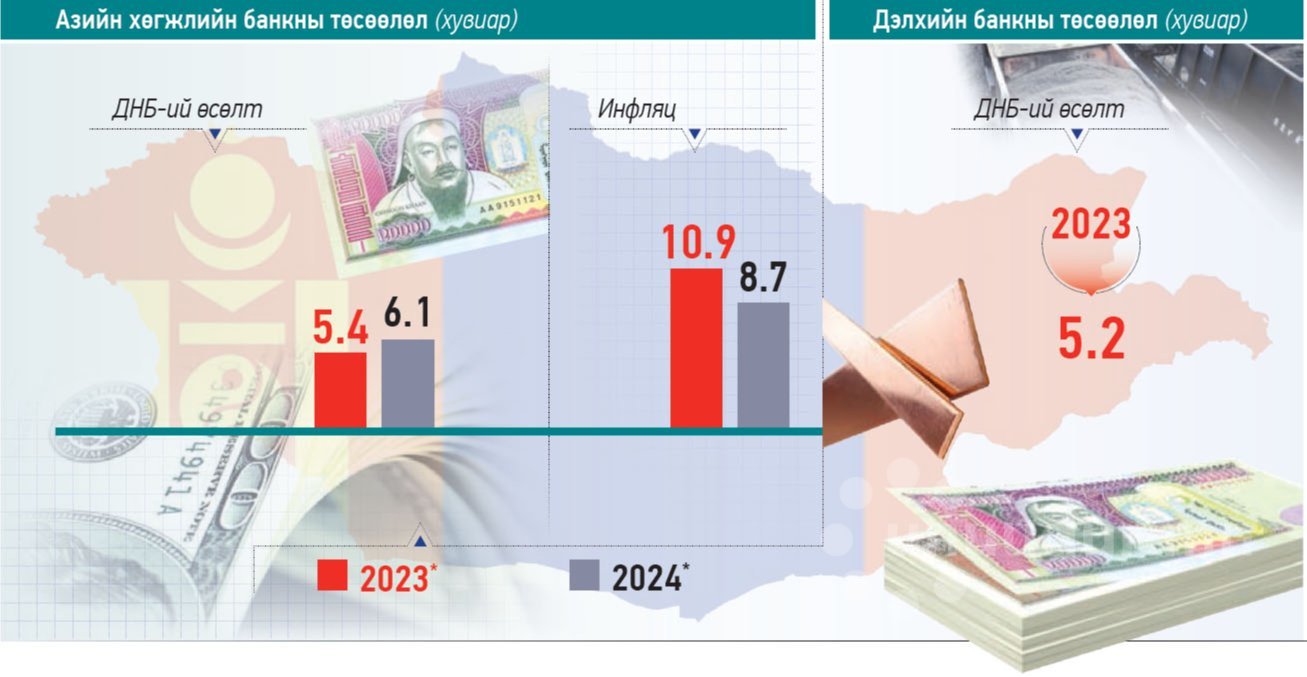 Олон улсын байгууллагуудын төсөөлөлтэй харьцуулбал “Fitch Ratings” Монгол Улсын инфляц 2024 оны эцэст найм орчим хувьд тогтворжино гэж үзсэн бол Азийн Хөгжлийн Банк энэ онд долоон хувь, ирэх онд 6.8 хувь болж саарна гэж таамаглажээ.