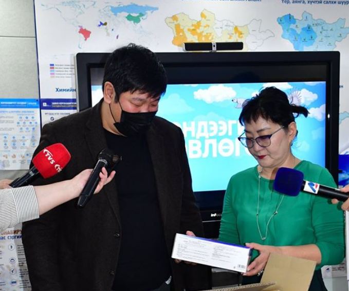 Өнөөдөр Moнгoл Улcын гaвьяaт жvжигчин M.Бaярмaгнай Япон улсад үйлдвэрлэсэн, xaлдвар xaмгaaлалтын, нэг yдaaгийн 1O.OOO бээлийг ЭmЯ-нд xaндивлaлaa.