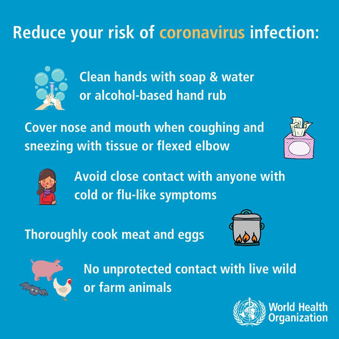 1. Халдвар авсан байж болзошгүй шинж тэмдэгтэй хүмүүсээс хол байх 2.  Гараа аль болох удаан сайтар савандаж угаах, спиртэн суурьтай гар ариутгагчаар гараа сайтар ариутгах 3.  Олон нийтийн газраар явахдаа амны хаалт байнга зүүх 4.  Нийтийн ариун цэврийн өрөөг ашиглахгүй байх, ашигласан тохиолдолд ариун цэврийг дээд зэргээр сахих 5.  Төстэй шинж тэмдэг илэрсэн тохиолдолд аль болох гэрээсээ гарахгүй байж, эрүүл мэндийн байгууллагад даруй мэдэгдэх 6. Үхсэн болон амьд амьтанд хүрэхгүй байх 7. Мал амьтны гаралтай мах, өндөг зэрэг бүтээгдэхүүнийг гүйцэт болгож идэх